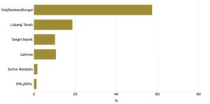 - Jamban sehat: tinja harus dibuang pada tempat yang aman, tidak mengotori air sekitar, bebas dari serangga, dan mudah digunakan. Sayangnya, data BPS (2024) menunjukkan sekitar 3.500 atau 1 dari 25 desa/kelurahan di Indonesia masih dominan tidak menggunakan jamban layak. Bahkan, di Provinsi Papua dan Provinsi Papua Pegunungan, tingkat pemakaian “selain jamban” sebagai tempat pembuangan tinja masih sangat tinggi.