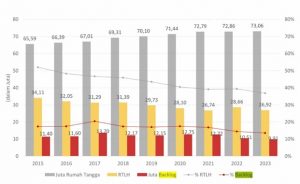 Data Badan Pusat Statistik (BPS) menunjukkan backlog nasional mencapai 12,7 juta unit pada tahun 2022, dengan konsentrasi terbesar di kota-kota padat penduduk seperti Jakarta, Surabaya, dan Medan. Pada tahun 2023, jumlah tersebut menurun menjadi 9,9 juta unit, namun tetap menunjukkan defisit besar. Hanya 63,15% rumah tangga di Indonesia yang memiliki akses terhadap hunian layak dan terjangkau, dengan capaian 65,47% di perkotaan dan 59,91% di pedesaan.