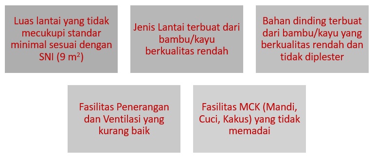 Berikut adalah indikator RTLH menurut BAPPENAS, dengan bagian yang tercetak miring terkait indikator kemiskinan: