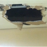 - Kerusakan pada plafon. Sumber: Merdeka.com (2014)